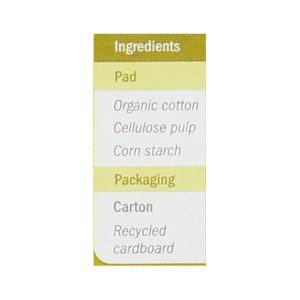 Specification:Manufacturer: Natracare; Details:Soft, absorbent and shaped for extraordinary comfort. Soft certified organic cotton next to your skin. No plastic, no