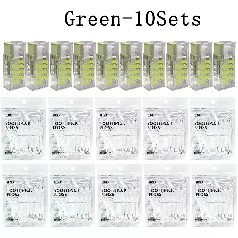 10Sets Portable Floss Holder Automatic Ejectable Includes 10Pcs Floss Organizer Press-on Carry-on Disposable Flossing Sticks