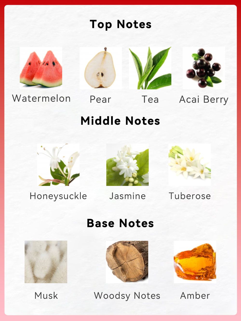 2.Long Lasting Fragrance, Notes Of Watermelon, Pear, Tea, Acai Berry Flavor,
