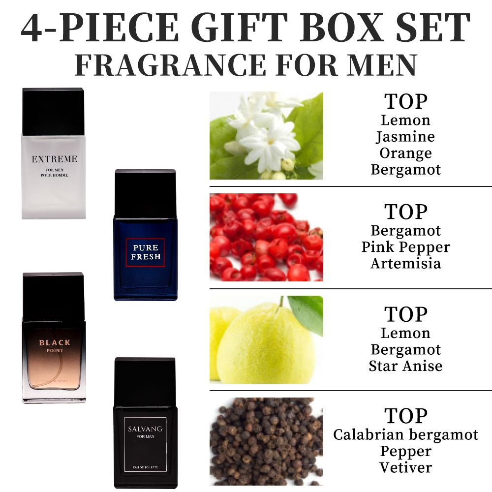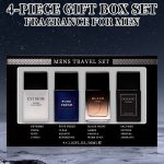 4-Piece Set, Men’s Eau De Toilette Spray Gift Box, Long Lasting Fragrance, 4 Different Flavor, Perfect For Holiday Gifts, Dating, Daily Life, Parties, 1.02 Fl Oz/bottle