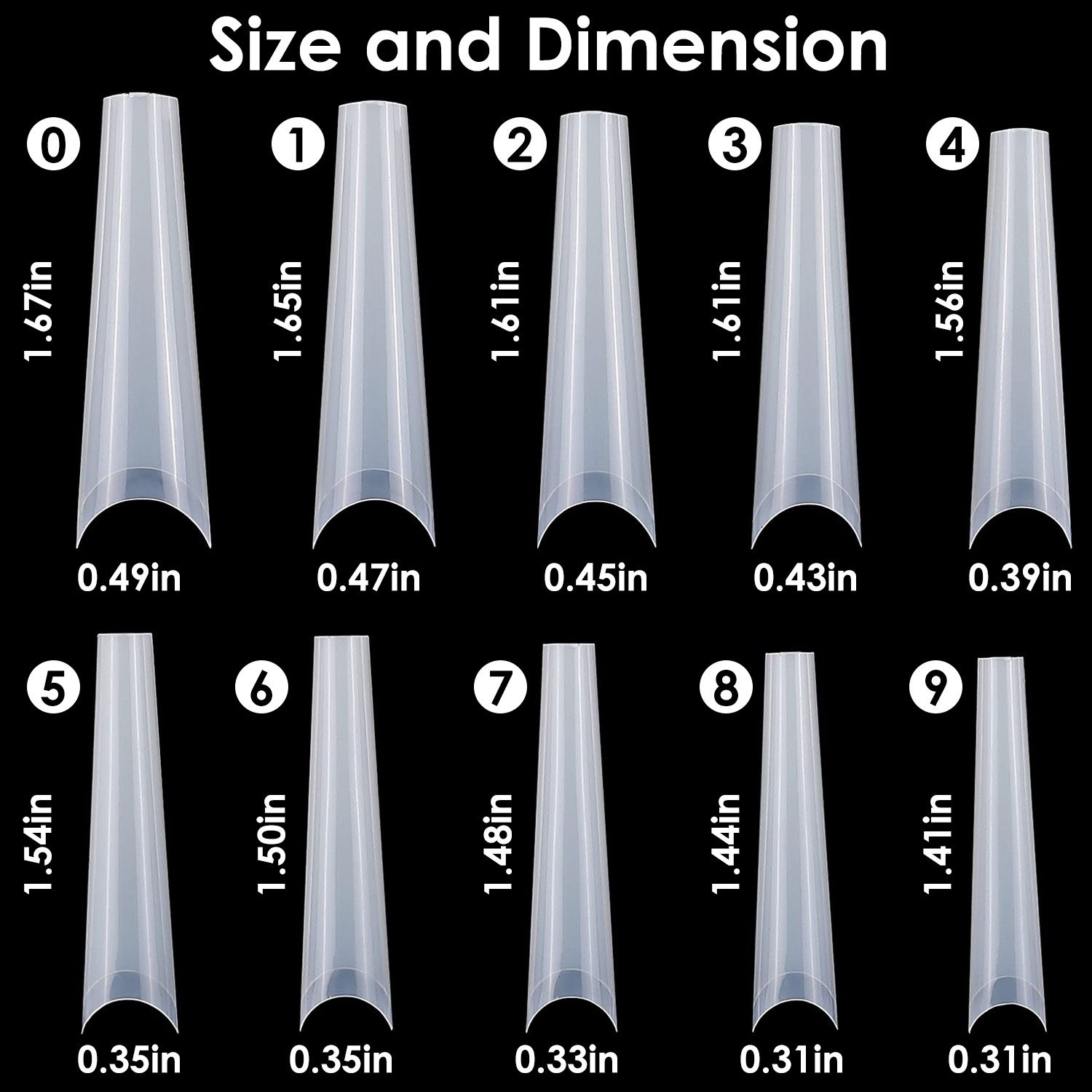 **Multiple Sizes*:500Pcs nail tips include 10different sizes numbered 0-9,50Pcs of each size. You can choose the most suitable size that fits your every finger.