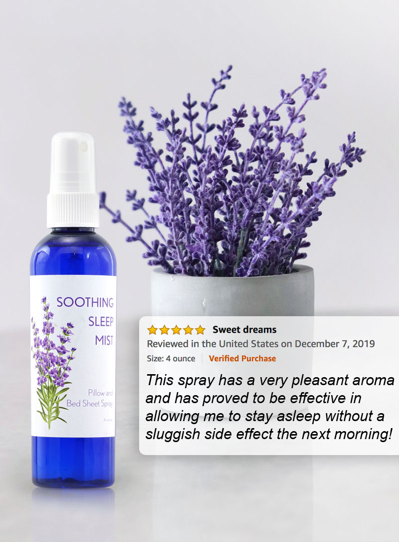 4.Sleep Spray For Pillows: We use only the purest oils and Amethyst crystals for their known ability to promote restful sleep and alleviate anxiety and stress. Will not stain fabric.