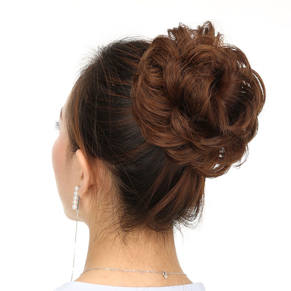 Messy Hair Bun Donut Hairpieces Updo Elastic Chignon Extension for Womens, Brown