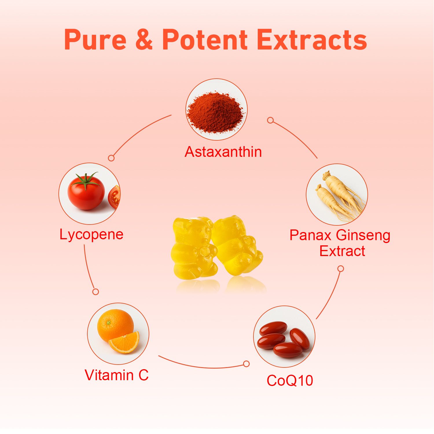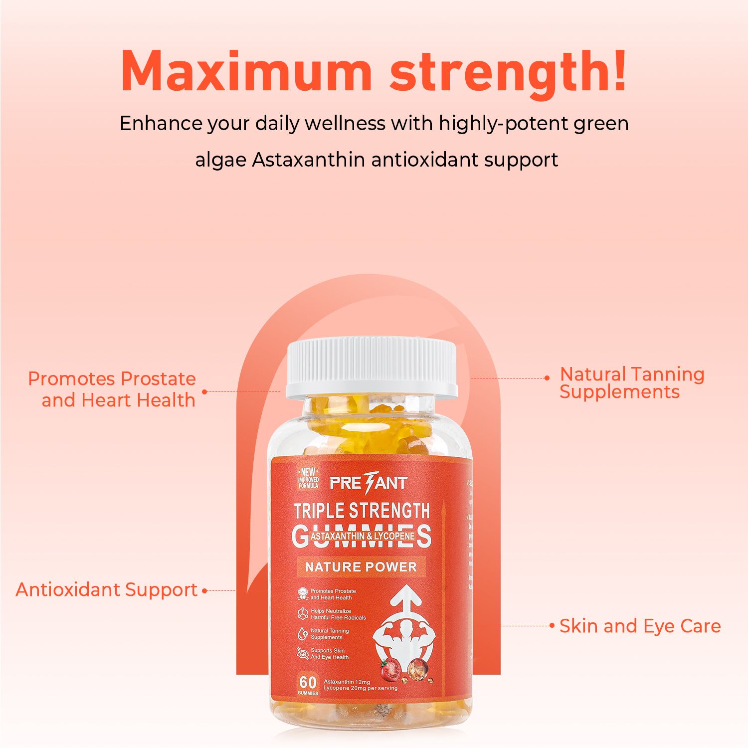 3.Double Antioxidant Power: Each serving delivers 12mg of Astaxanthin and 20mg of Lycopene, two potent antioxidants that work synergistically to combat oxidative stress and support overall wellness.